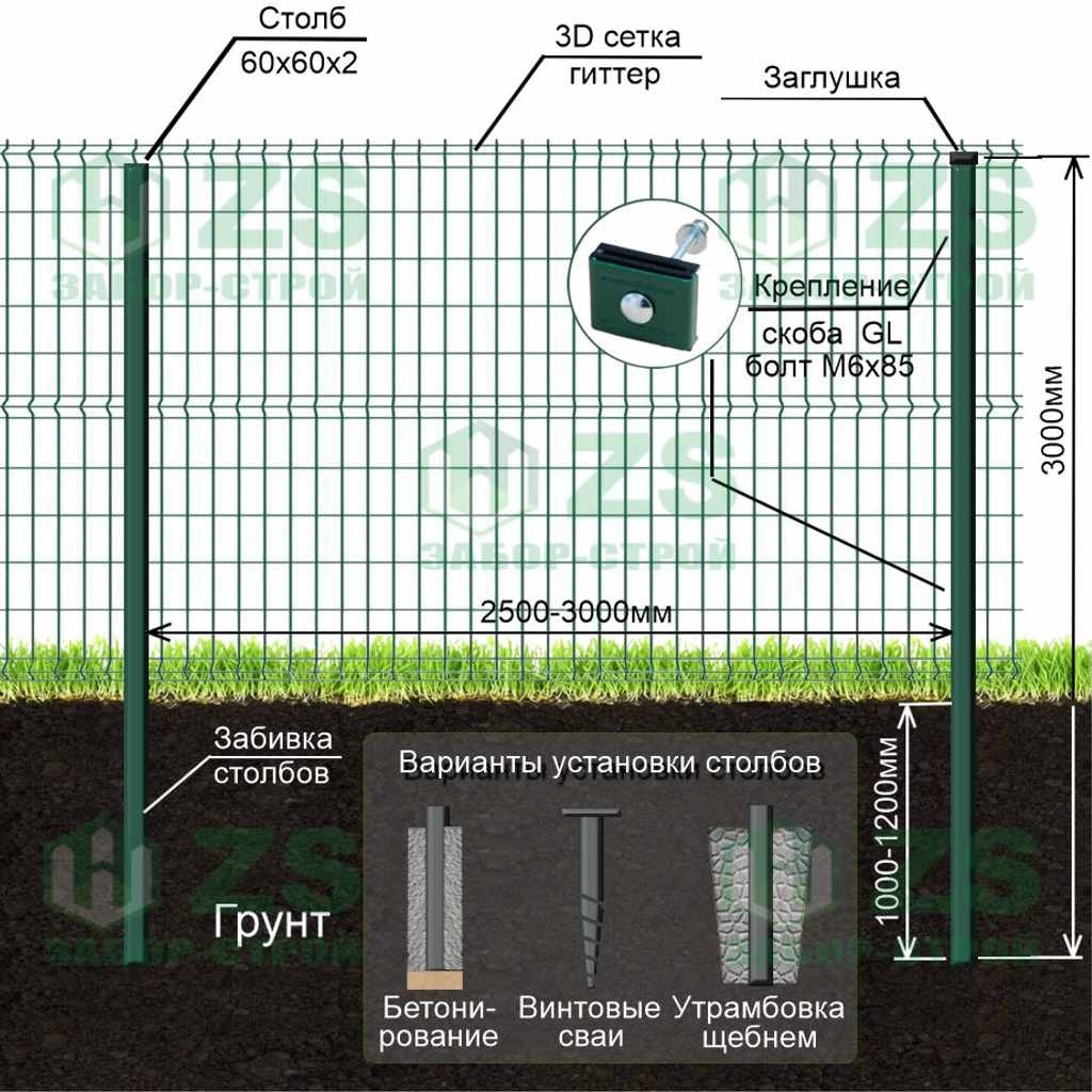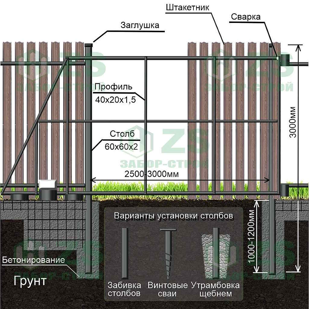 Самый недорогой способ монтажа, установка металлических столбов выполняется забивкой в грунт от 1,2 до 1,5 метра