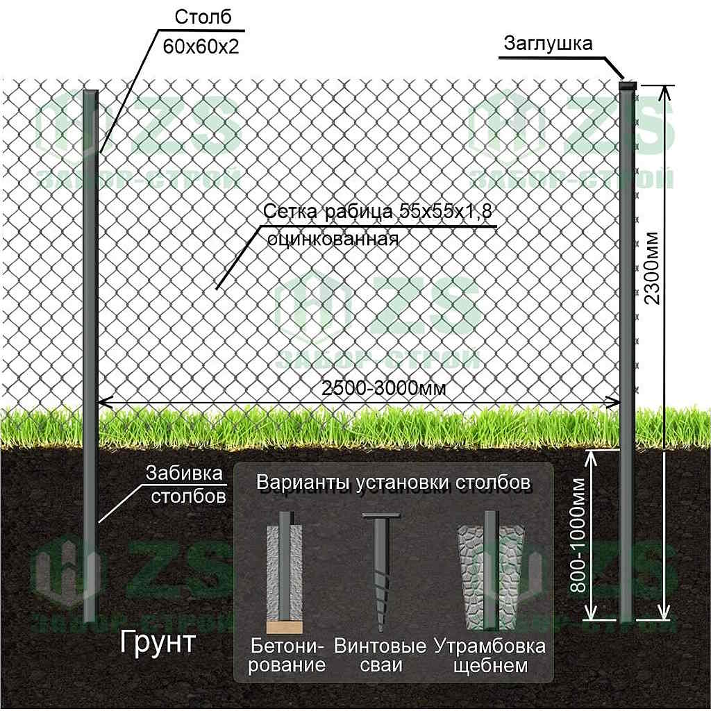 Рабица высотой от 1,5 до 2 метров c характеристиками 55x55x1,8 мм