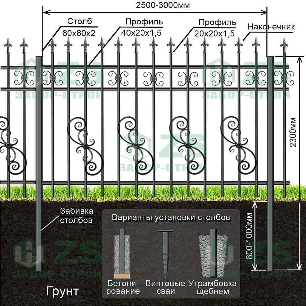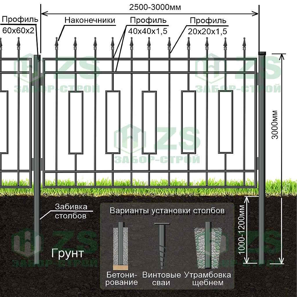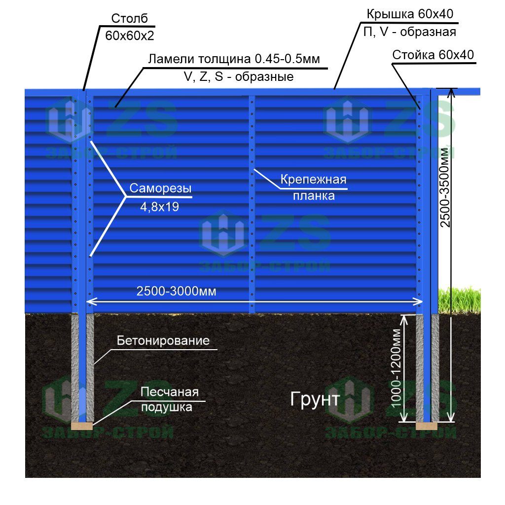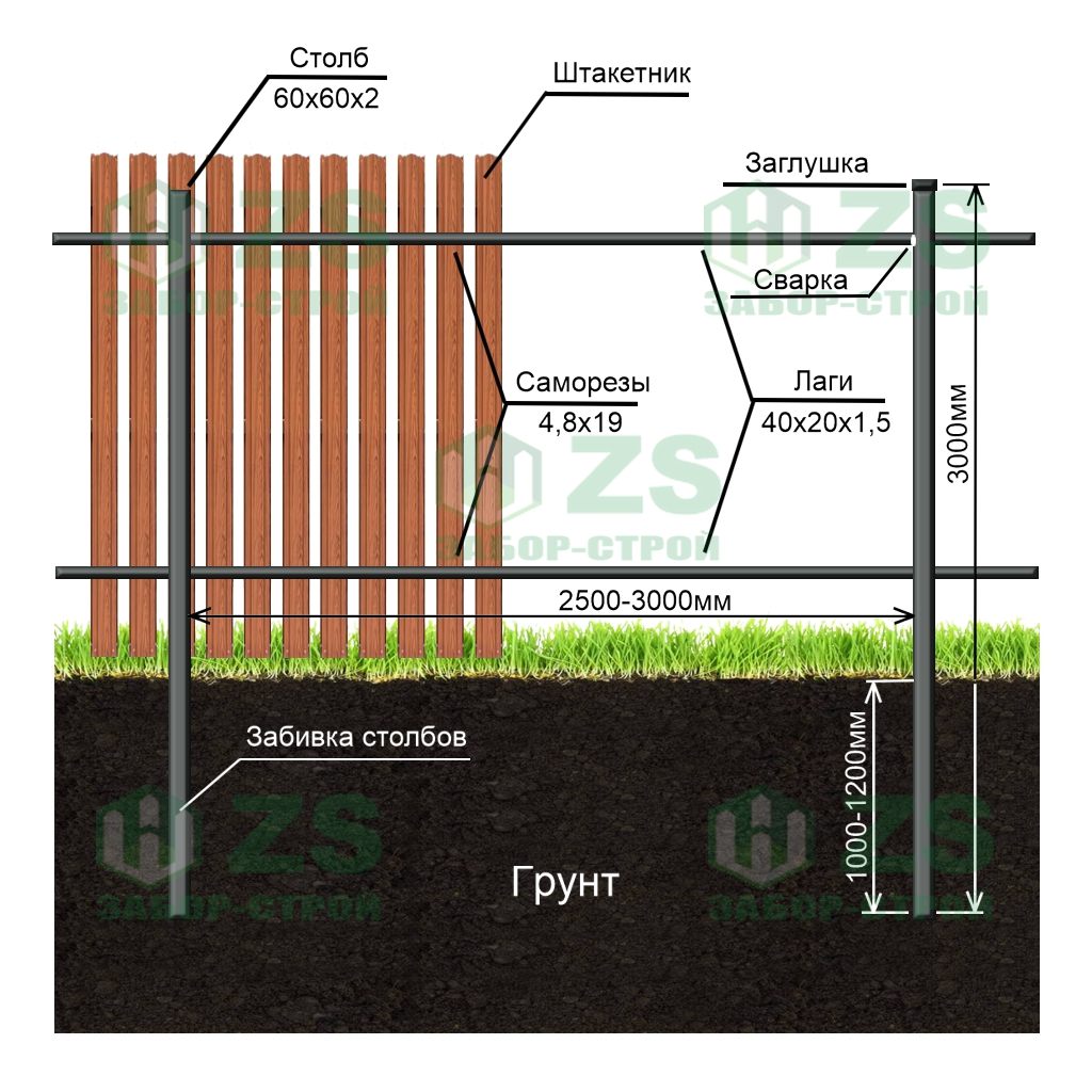 Конструкция забора из профнастила с утрамбовкой щебнем: