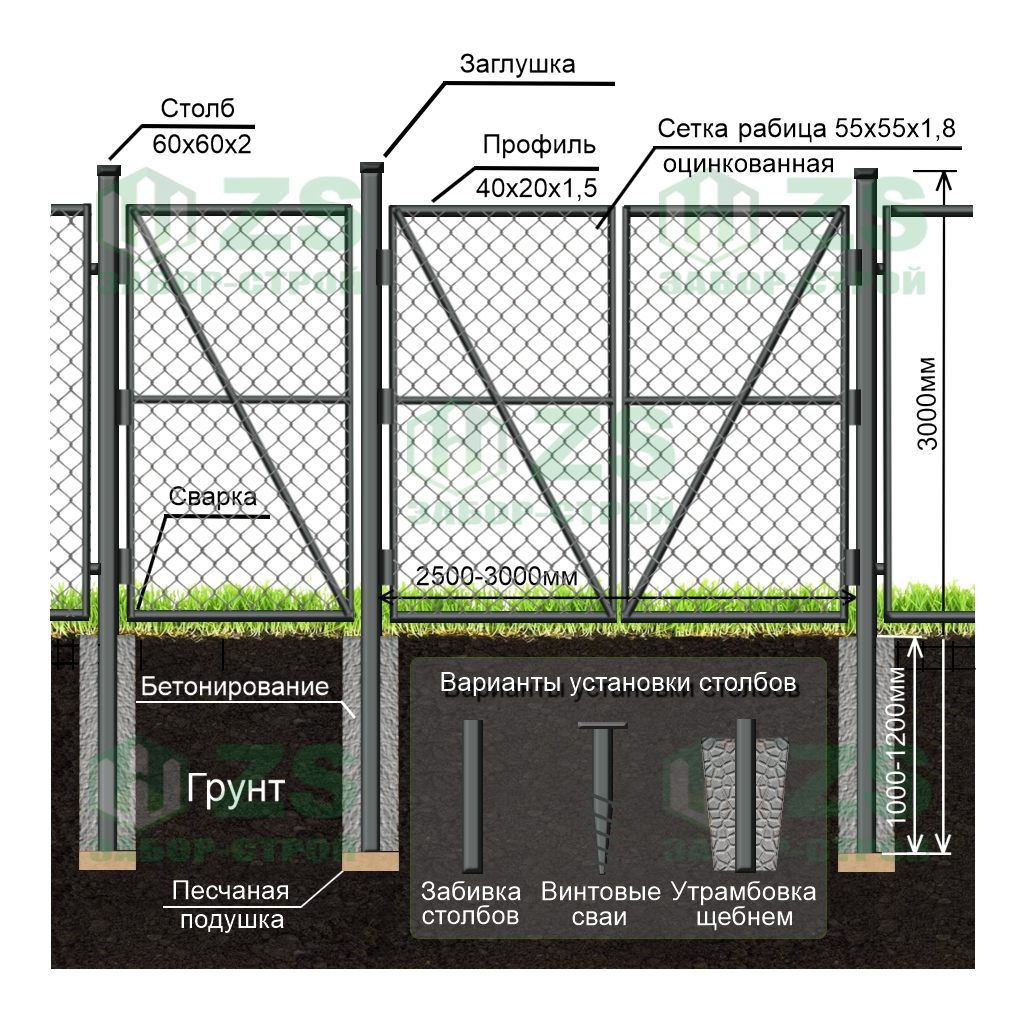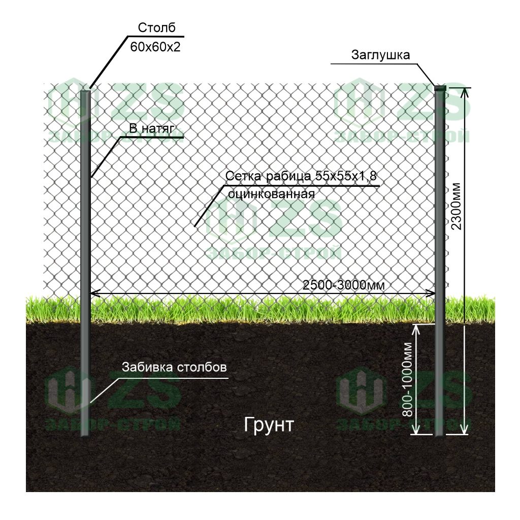 Забор из сетки рабица в натяг (55х55х1,8мм):